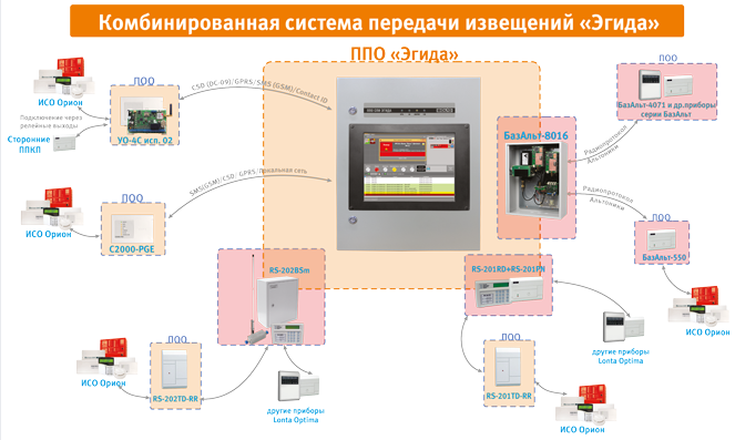 Комбинированная система передачи извещений "Эгида" является универсальной системой передачи извещений пожарной сигнализации, поддерживающей параллельный прием извещений и передачу команд управления по следующим каналам связи:
